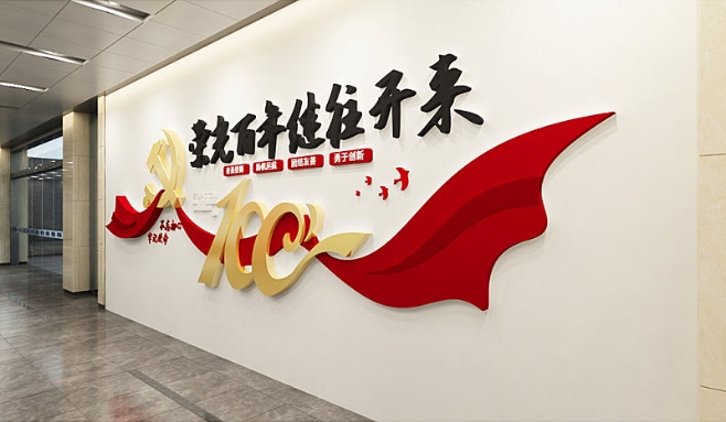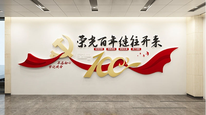红色简约建党百年党建标语文化墙